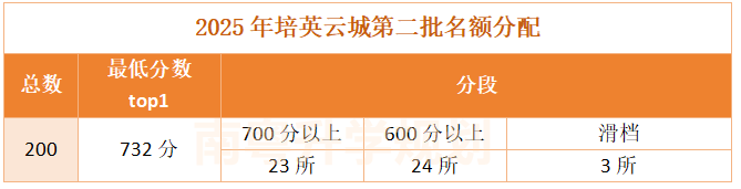 名额分配计划人数200人,主要面向白云区。其中,广州市培英中学(鹤洞校区)以732分拿下分数top1