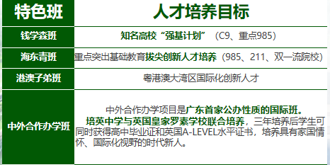 融合国家基础课程+研学课程+钱班特色课程。钱班的培养目标是各行各业的领军人物,高中的钱班学业目标定位为C9院校。