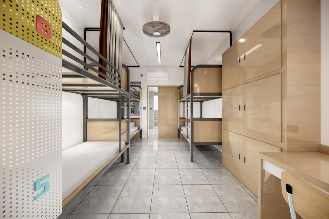 4-8人套间,宽敞舒适,南北对流,透光通风,变频空调,独立卫浴,洗衣房,全天24小时热水供应,生活老师昼夜更替的无缝值班,让学生“住得安心、学得舒心”。