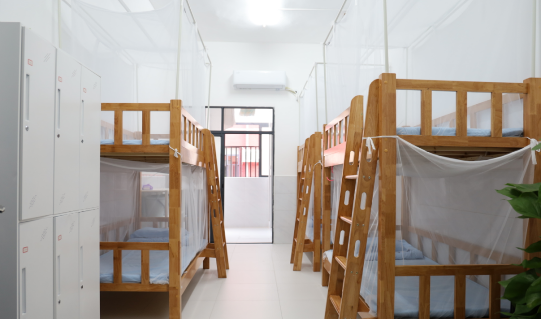 初中部实行寄宿制管理,学校宿舍是独栋管理,共有2栋宿舍;合计190间标准6人间宿舍,可容纳1140人住宿;宿舍设施设备齐全,确保学生住宿宽敞,规范,便捷,安全。