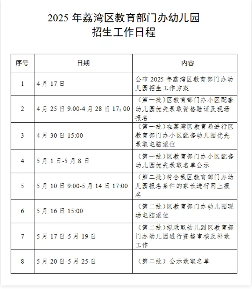 荔湾区教育局发布2025年幼儿园招生方案